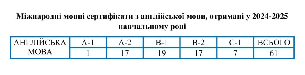 Міжнародні мовні сертифікати з англійської мови, отримані у 2022-2023 навчальному році