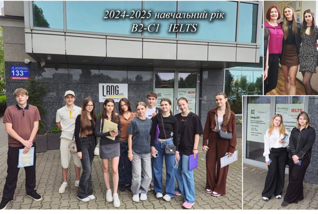 Група учнів 10 класу у червні 2025 року їздили у Варшаву здавати міжнародний мовний іспит з англійської мови IELTS ( академічний рівень). Деякі учні здавали електронну версію іспиту і отримали результати дуже швидко. Інші здавали паперову версію іспиту, результати тільки прийшли. Отримано наступне: С-1- чотири учні! В2- вісім учнів!